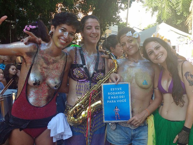 "Uma coisa que aconteceu muito comigo esse carnaval foi o cara perguntar se podia conversar e eu dizer que não e o cara começar a me xingar, meu filho, cresce!", diz Renata Rodrigues, jornalista e outra responsável pelo bloco.